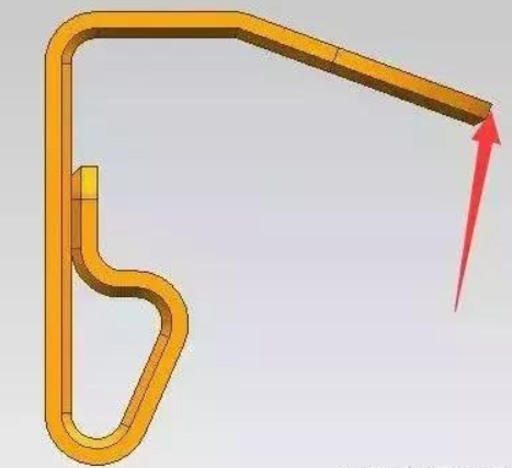 随后的成型过程相对简单。可以一次进行90°模塑。也许朋友会问,为什么不首先这样做呢?由于这个地方的模制被分成几个模制品,产品相对较大,五金冲压模具将变得很长而不压缩。
